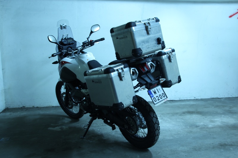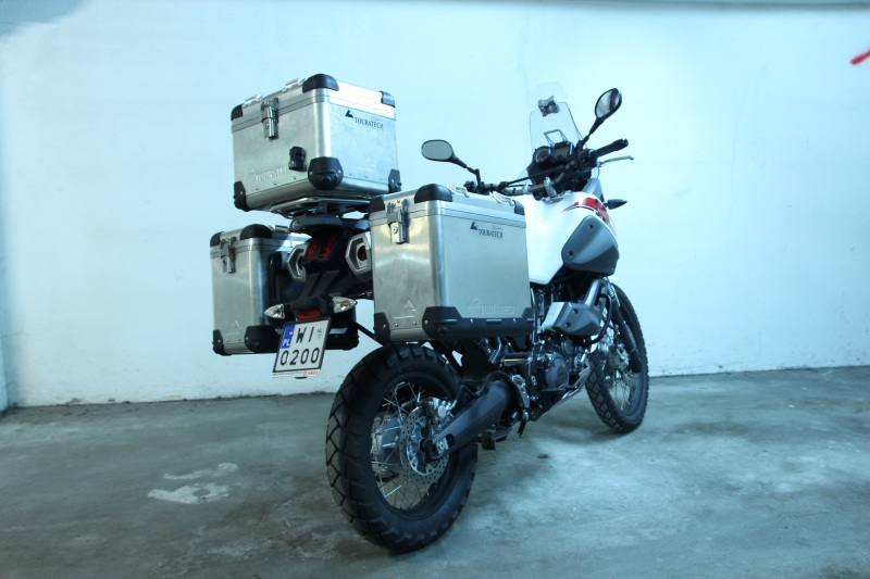 TOURATECH – zdecydowaliśmy nie zabierać całości dostarczonego sprzętu. Yamaha sama wymyśliła składaną w razie upadku dźwignię zmiany biegów. Będziemy tez potrzebować mocniejszych osłon dłoni. Na słowa uznania zasługują solidne stelaże i kufry oraz pancerna osłona pod silnik. Dobrze swoją role również spełnia spojler na przednią szybę. W trasie rozpadł się jeden zamek do kufrów, więc warto mieć zapasowy bo w sumie jest ich 5 sztuk. Zamek zostanie oczywiście wymieniony przez producenta.
