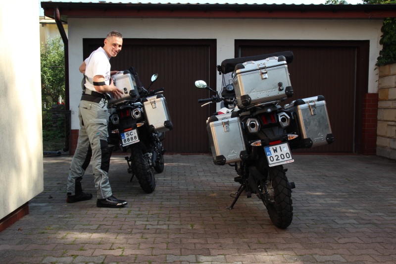 MODEKA – 3 warstwowe kombinezony AFT-Touring testujemy na razie w wersji letniej, ale już wiadomo że chłodniejsze dni nie będą nam dokuczały. W kurtce z dwoma podpinkami wytrzymałem może 10 min. Kolejny raz założę to wszystko pewnie w grudniu. Cały kombi bardzo wygodny. Dużo kieszeni co się przydaje. Nigdzie nie ciśnie, nie ciągnie, nie uwiera. Buty Le Mans 2 – bomba. Wygodnie i lekkie. Raczej na asfalt bo ślizgają się na żwirze/piasku. Także w obszarach miejskich można śmiało śmigać i przy okazji pobiegać między urzędami i ambasadami załatwiając przeróżne papierki.
