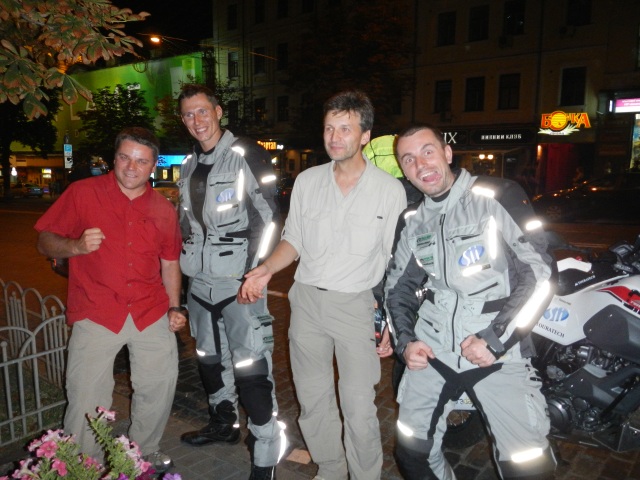 Po tym cudownym obiedzie w pełni sił ruszyliśmy dalej. Droga do Kijowa zaskoczyła nas dobrą nawierzchnią i bardzo małym ruchem. Nie obyło się bez mandatu. Dojechaliśmy do Kijowa pod wieczór. W samym centrum zatrzymaliśmy się na kolację. Po chwili dosiedli się Polacy – Krzysiek i Bartek, którzy podobna trasę do naszej przez Azję Centralną właśnie pokonali samochodami terenowymi. Panowie przekazali nam garść cennych uwag i wskazówek i świeżych informacji. Dzięki Bartek i Krzysiek!