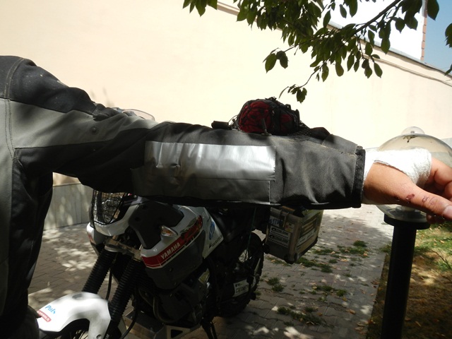 – lewy łokieć (protektor łokcia niestety musiał się przesunąć w kieszeni w której siedzi i zadania nie wykonał, są ślady na ciele)