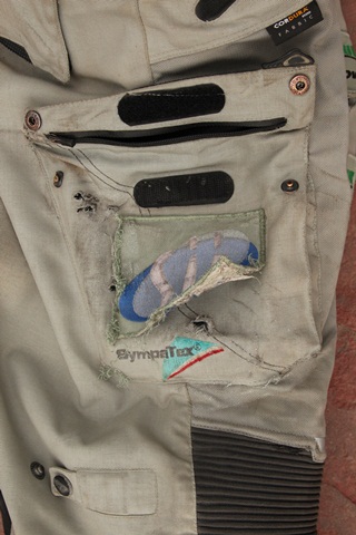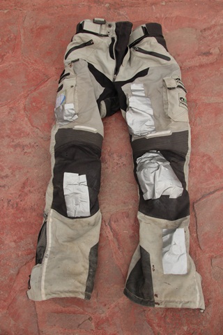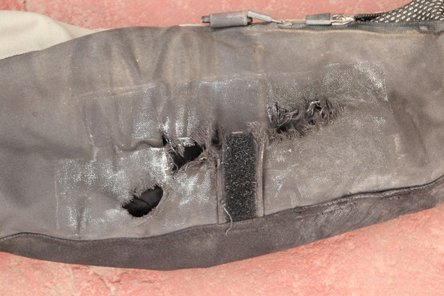 Wszystkie dziury w kombinezonie zaklejone powertape. Okazało się że ta taśma całkiem nieźle sobie z tym poradziła.