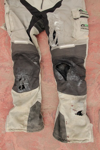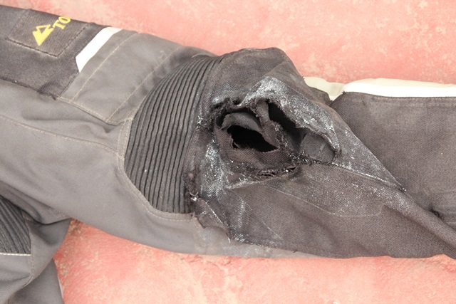 – lewe kolano (wszystkie warstwy ciuchów zdarte, protektor zdarty, był w idealnym miejscu, brak śladów fikołka na ciele)