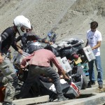 Grupka przewoźników przystąpiła do załadunku. Wpychali na łódź na zmianę motocykle lżejsze i cięższe. Sporo emocji wzbudził załadunek „słonia” BMW 1200 GS Adventure. Łódź nieustannie kiwała się na lewo i prawo i kilkakrotnie ktoś wbiegał po palach aby łapać swój motocykl, który wydawał się już bliski wodowania. Zimny pot oblewał plecy każdego z nas ale wiedzieliśmy że po prostu musimy zaufać tym ludziom i oddać nasze motocykle w ich ręce. Atmosferę rozładował Uli swoim kultowym już „Don’t touch the bikes!”. Ostatecznie udało się. Motocykle zostały załadowane. Cała przeprawa trwała może nieco ponad godzinę. Widoki przepiękne. Mijały nas łodzie, na których miejscowi przeprawiali nawet samochody terenowe i ciężarowe. Plotka głosi, że około 40 samochodów utopiono.