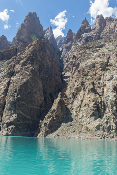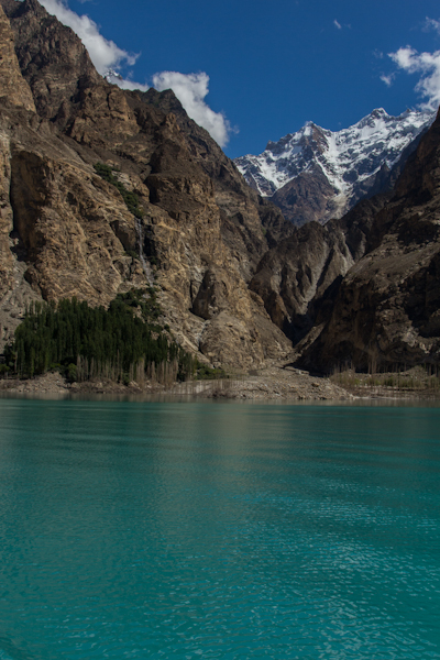 Samo jezioro, znane również jako Gojal Lake, jest stosunkowo młode ponieważ powstało w styczniu 2010 roku. Dlaczego się tam znaleźliśmy i dlaczego musieliśmy się przez nie przeprawiać ? Otóż jezioro nie powstało tak sobie ale w wyniku potężnego osunięcia gruntu, który zablokował bieg rzeki Hunza. W wyniku osunięcia śmierć poniosło niestety 20 osób a około 6000 zostało przesiedlonych. Przez pierwszy tydzień po osunięciu jezioro osiągnęło długość 21km. Pod wodą znalazły się 242 domy, 135 sklepów, 4 hotele, 2 szkoły i 4 fabryki. Ostatecznie zalanych zostało 25km Karakorum Highway oraz zniszczonych zostało 6 mostów. Wniosek był więc prosty. Przez jezioro trzeba się przeprawić łodziami bo inaczej się nie da.