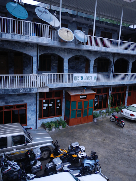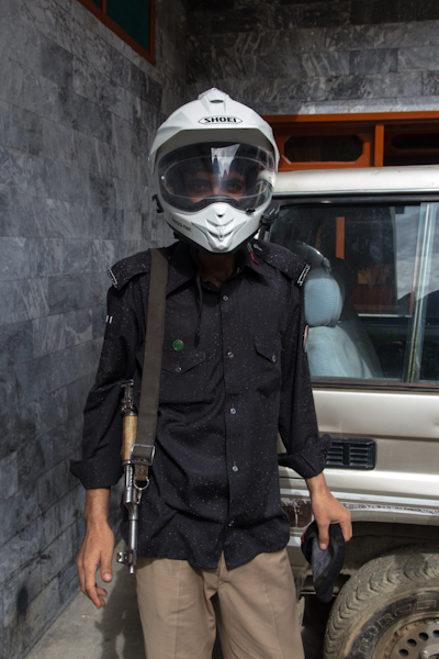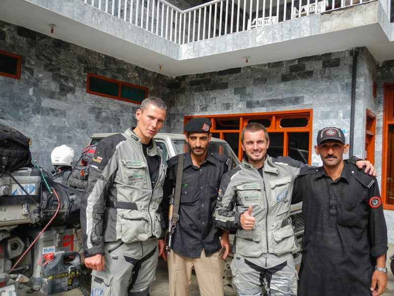 Tak więc ponownie w grupie, tym razem nieco mniejszej, ruszyliśmy do Islamabadu wzdłuż KKH. Do przejechania mięliśmy sporo więc wiedzieliśmy że nie damy rady pokonać dystansu jednego dnia. Zatrzymaliśmy po ok 280km, w motelu przy drodze, w jednej z małych miejscowości. Tego wieczora do motelu przyjechała policja i zakazała nam opuszczać teren aż do następnego ranka. Wcześniej nigdy tego nie robili. Na poważnie dali o sobie znać dopiero następnego dnia, który to spędziliśmy cały czas podążając za eskortą. Strasznie to było nużące. Tłumaczono nam, że to ze względów bezpieczeństwa, że na drogi osunęły się skały itp. itd. Dopóki policja podróżowała samochodami nie było najgorzej, ale kiedy na dwóch odcinkach eskorta podróżowała motorkiem 150cc zrobiło się naprawdę ciężko. Zastanawialiśmy się przed czym może ochronić grupę 8 osób jeden policjant bez broni na tym malutkim motorku.
